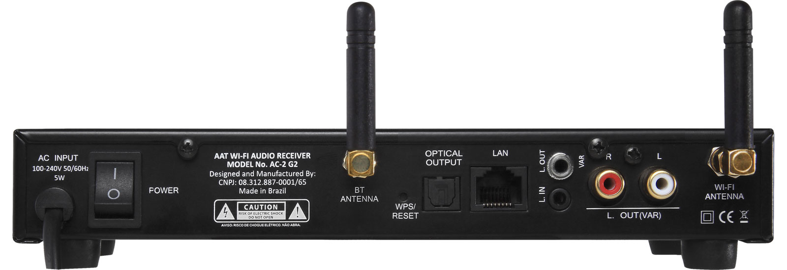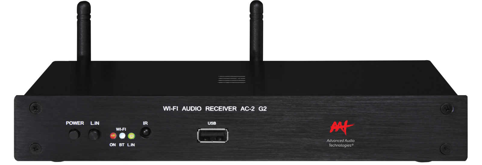 Streaming de Áudio Estéreo (Pré-amplificado). Equipado com conectividade Wi-Fi, AirPlay, Bluetooth 5.0 e LAN (cabeada), o AAT AudioCast AC-2 G2 atua como fonte de áudio para amplificadores multiroom digitais da AAT ou de outras marcas. Oferece saída de áudio variável para melhor experiência sonora em ambientes residenciais ou corporativos.