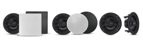 Caixas acústicas de embutir bordeless com woofer de 8” em fibra de carbono e tweeter de 1”, alta potência e fidelidade sonora.