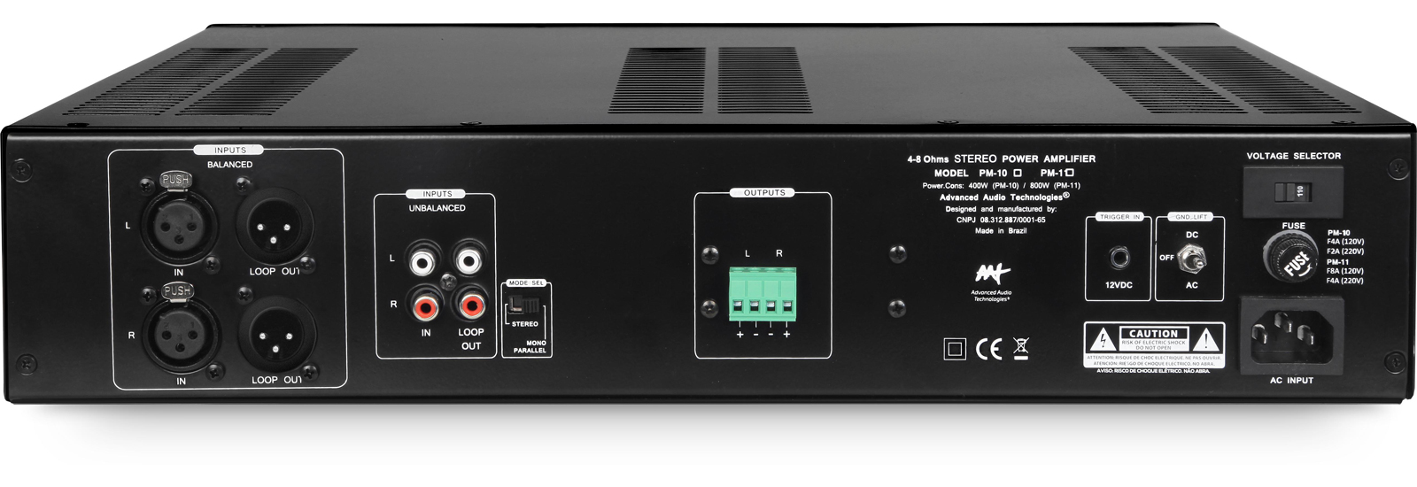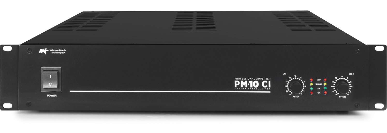 O amplificador estéreo PM-10 CI, que pertence à linha Pro Audio AAT, é uma solução de alta qualidade e custo atraente para a sonorização de espaços comerciais e corporativos, como restaurantes, supermercados, lojas, clínicas e escritórios.