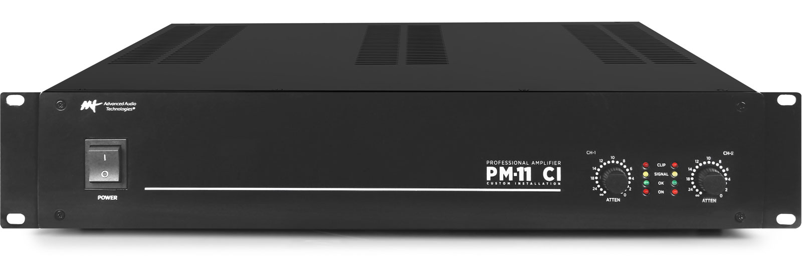 O amplificador estéreo PM-11 CI, que pertence à linha Pro Audio AAT, é uma solução de alta qualidade e custo atraente para a sonorização de espaços comerciais e corporativos, como restaurantes, supermercados, lojas, clínicas e escritórios.