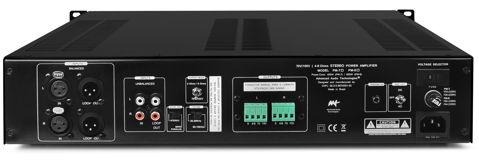 O amplificador estéreo PM-9 CI, que pertence à linha Multi-Impedance AAT, é a solução perfeita para a sonorização de espaços comerciais e corporativos, como restaurantes, supermercados, lojas, clínicas e escritórios.