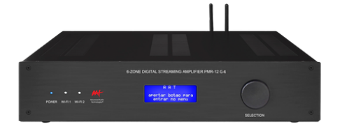 Amplificador Multiroom Digital de 6 Zonas com 2 streamers Wi-Fi. O PMR-12 conta com 4 entradas analógicas, 2 digitais (ópticas/coaxiais) e 2 streamers Wi-Fi (também com LAN cabeado), saídas para subwoofer, firmware atualizável e Trigger In/Out. Fonte bi-volt automática e tecnologia de redução de ruído.