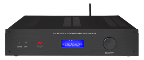 Amplificador Multiroom Digital de 4 Zonas com Streaming. Projetado para sonorizar até 4 espaços (8 canais) independentes, o PMR-9 conta com 4 entradas analógicas, 2 digitais (ópticas/coaxiais) e 1 streamer Wi-Fi (com LAN cabeado). Saídas dedicadas para subwoofer, atualização de firmware pela internet, menu protegido e controle via Trigger In/Out. Fonte bi-volt automática e tecnologia antirruído.
