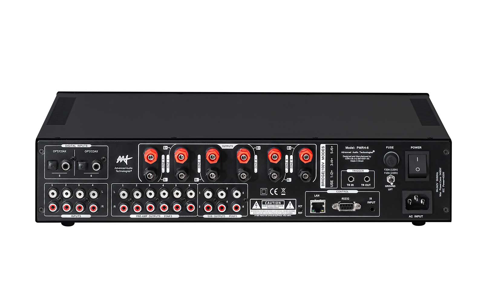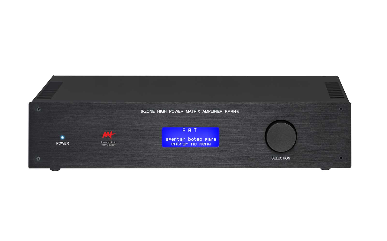 Amplificador Multiroom Digital de 6 Zonas (High Power). Projetado para sonorizar até 6 espaços de grande porte, com 4 entradas analógicas, 2 digitais e saídas para subwoofer. Controle via painel, TCP, Serial, APP e IR.