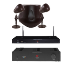 Kit com 2 caixas passivas, 1 subwoofer passivo, Amplificador de Subwoofer e Streaming de Áudio Estéreo. Perfeito para integração total em ambientes externos.